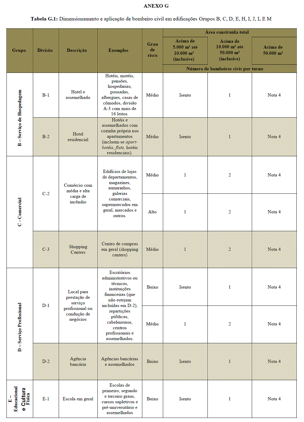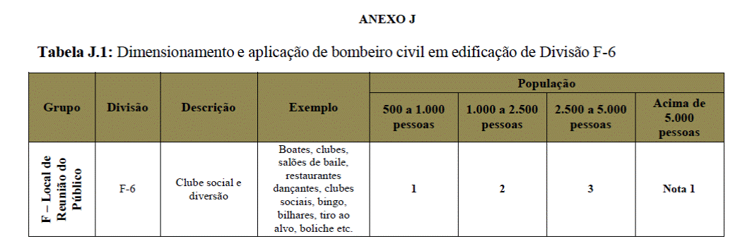 6.1.2 A quantidade de bombeiro civil para os grupos C- 2, C-3, H-2, H-3, I-3, J-4, L-1 e M-2 será determinada