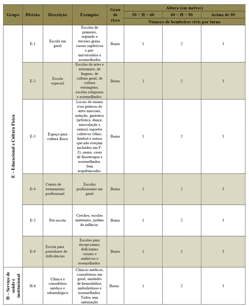 aplicação de bombeiro civil em edificações dos grupos B-1, B-2, C-2, C-3, D-1, D-2, E-1, E- 2, E-3, E-4, E-5, E-6, H-2, H-3,H-6,
