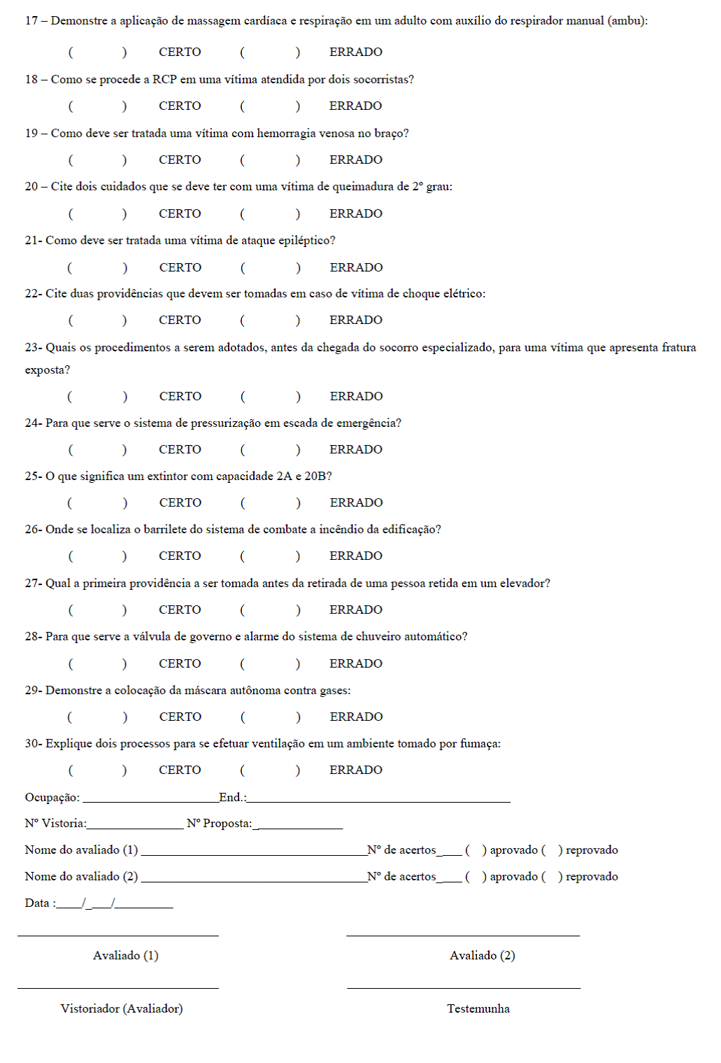 um bombeiro civil e fazer 08 (oito) perguntas dentre as 30 (trinta) constantes do Anexo