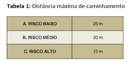 distâncias máximas de caminhamento para os extintores sobrerrodas