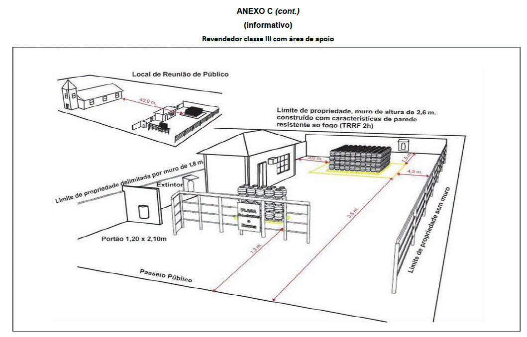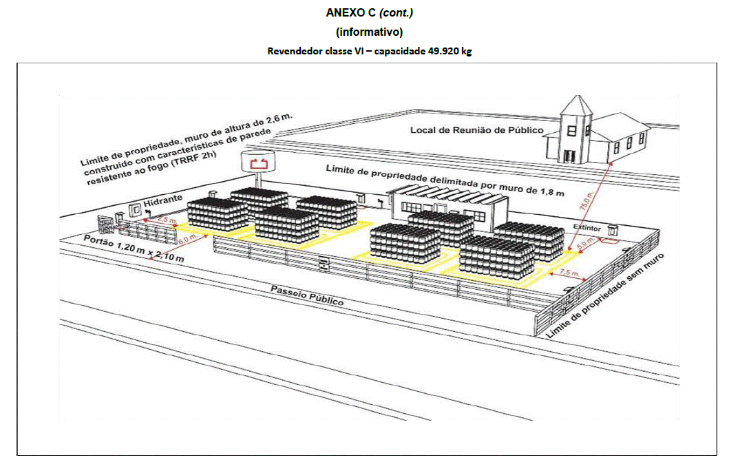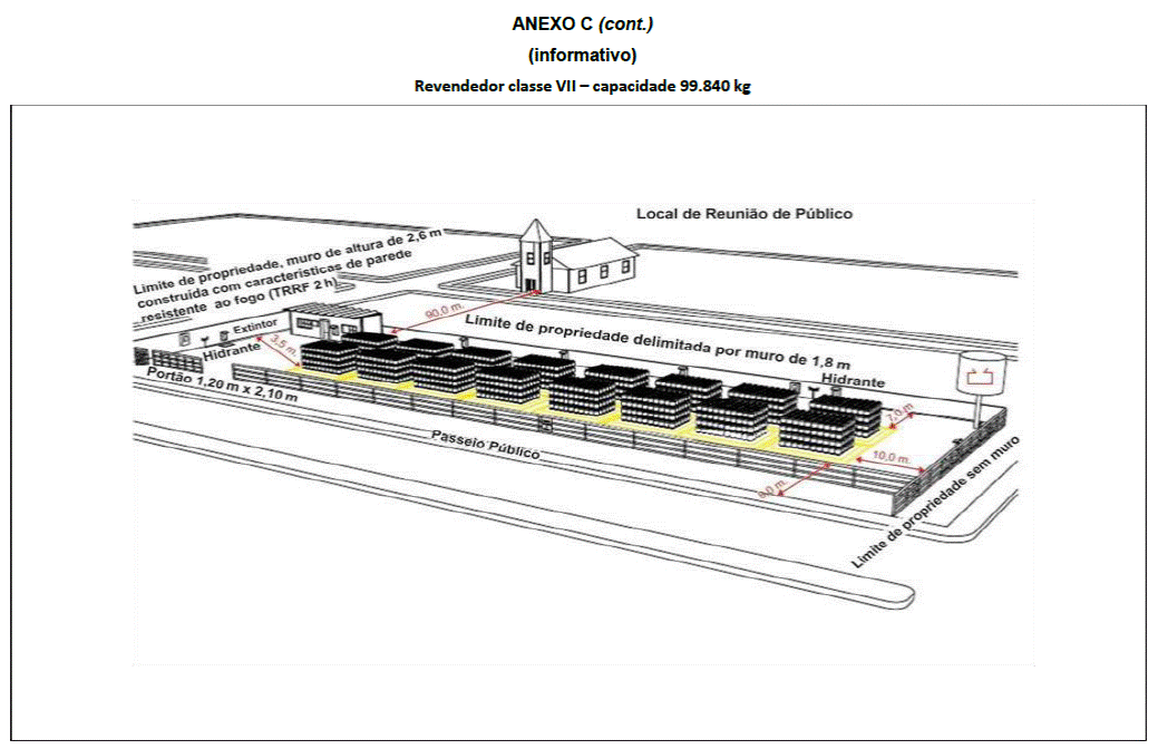 deve considerar a proteção das áreas de envase de recipientes, ilhas de carregamento em torno do caminhão ou vagão tanque.