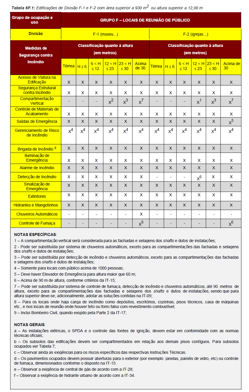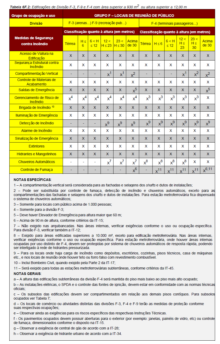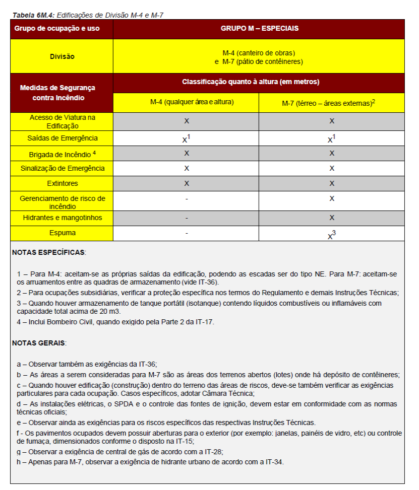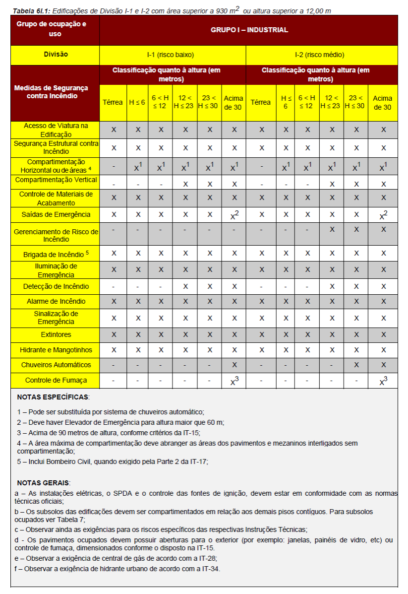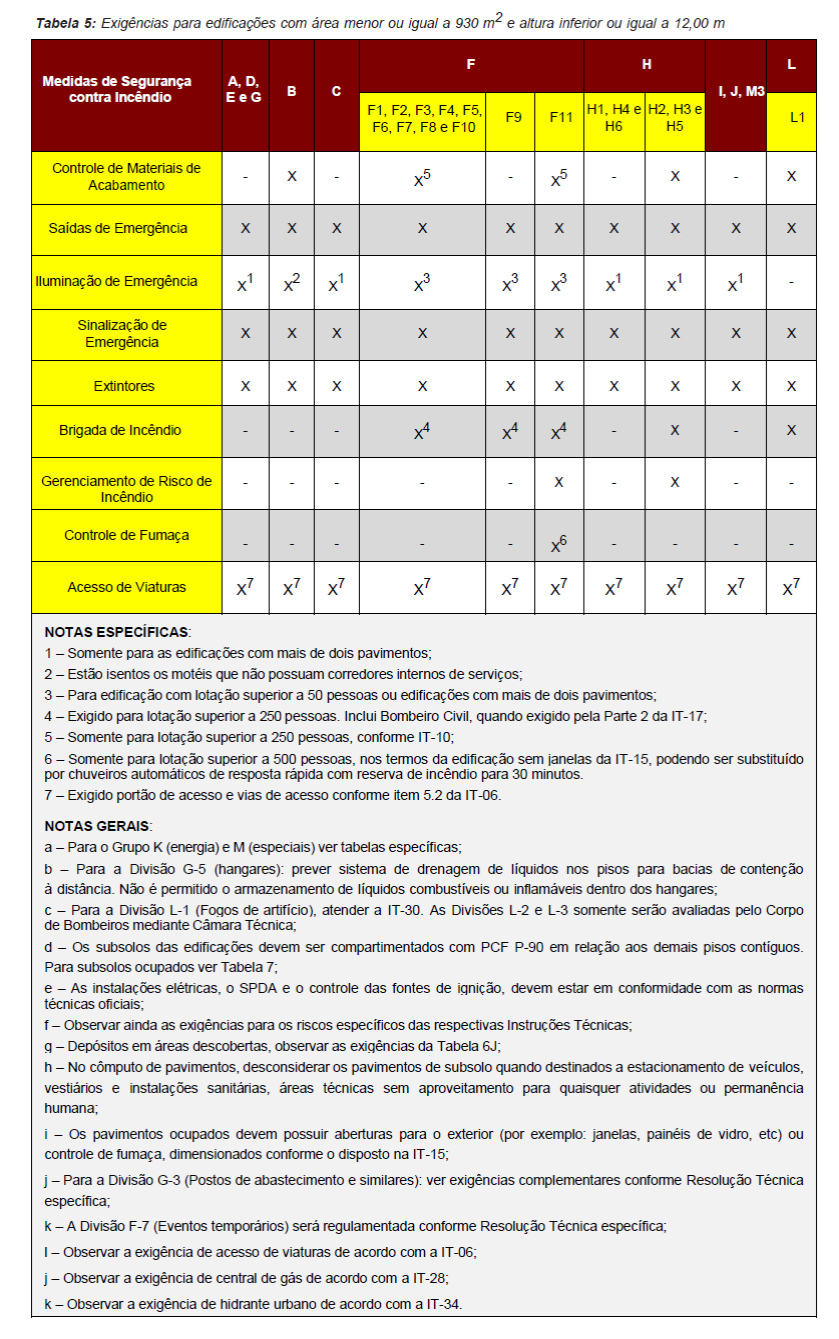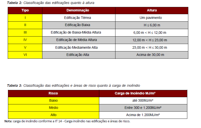 Para fins de aplicação das medidas de segurança contra incêndio serão