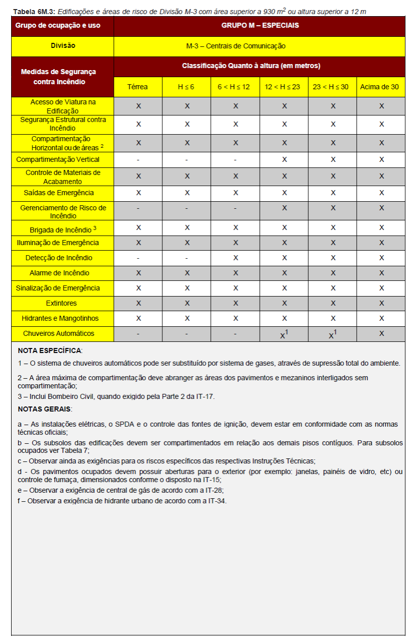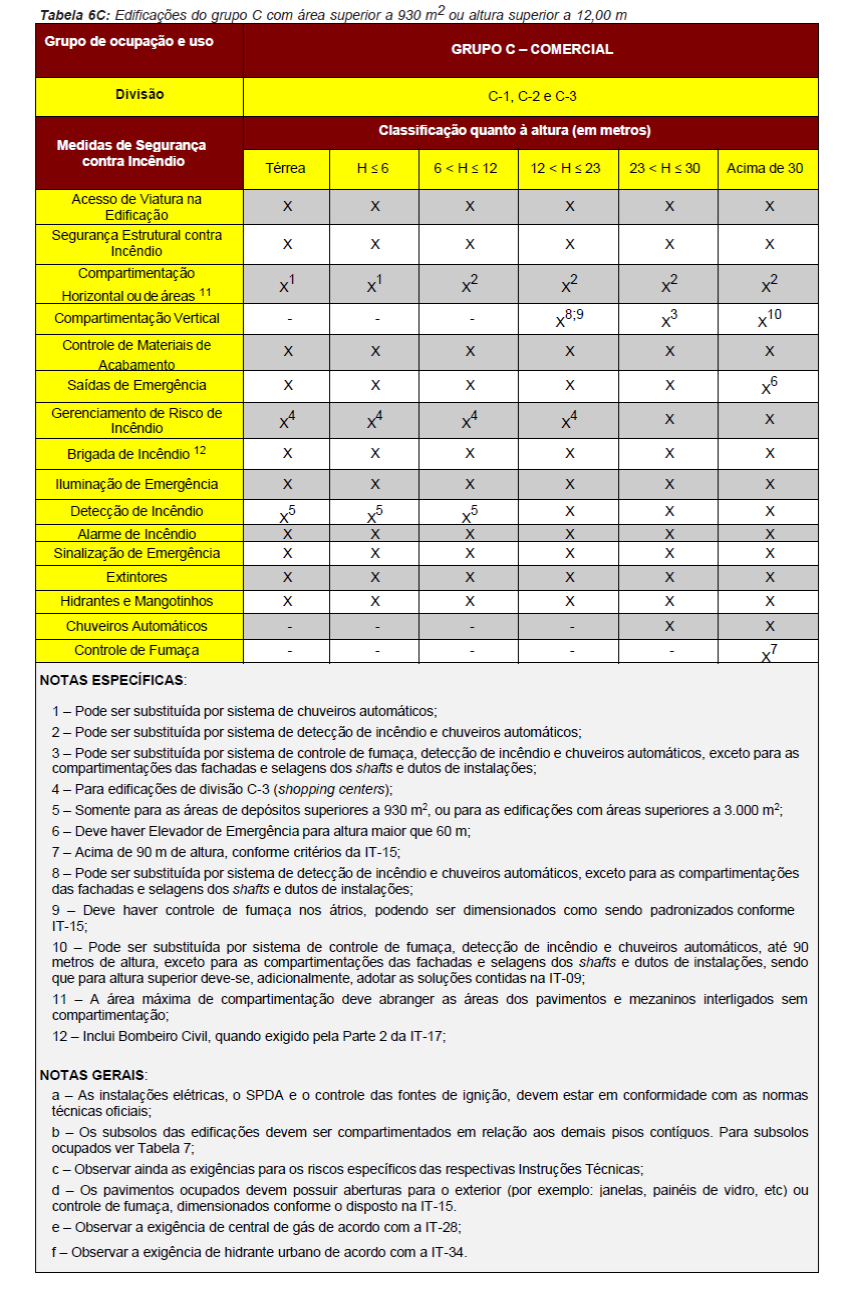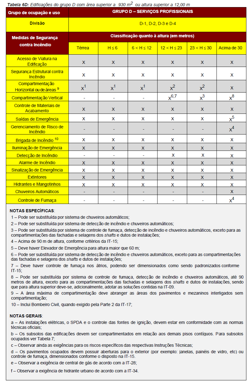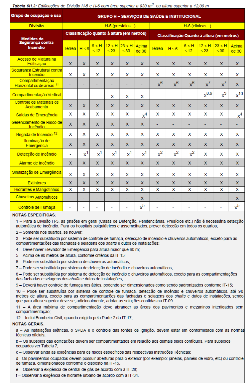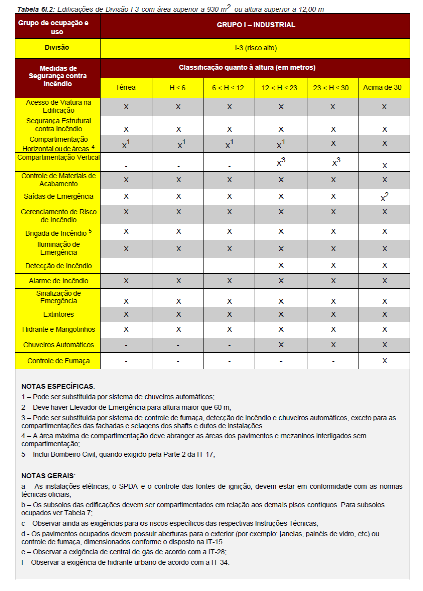 Para fins de aplicação das medidas de segurança contra incêndio serão