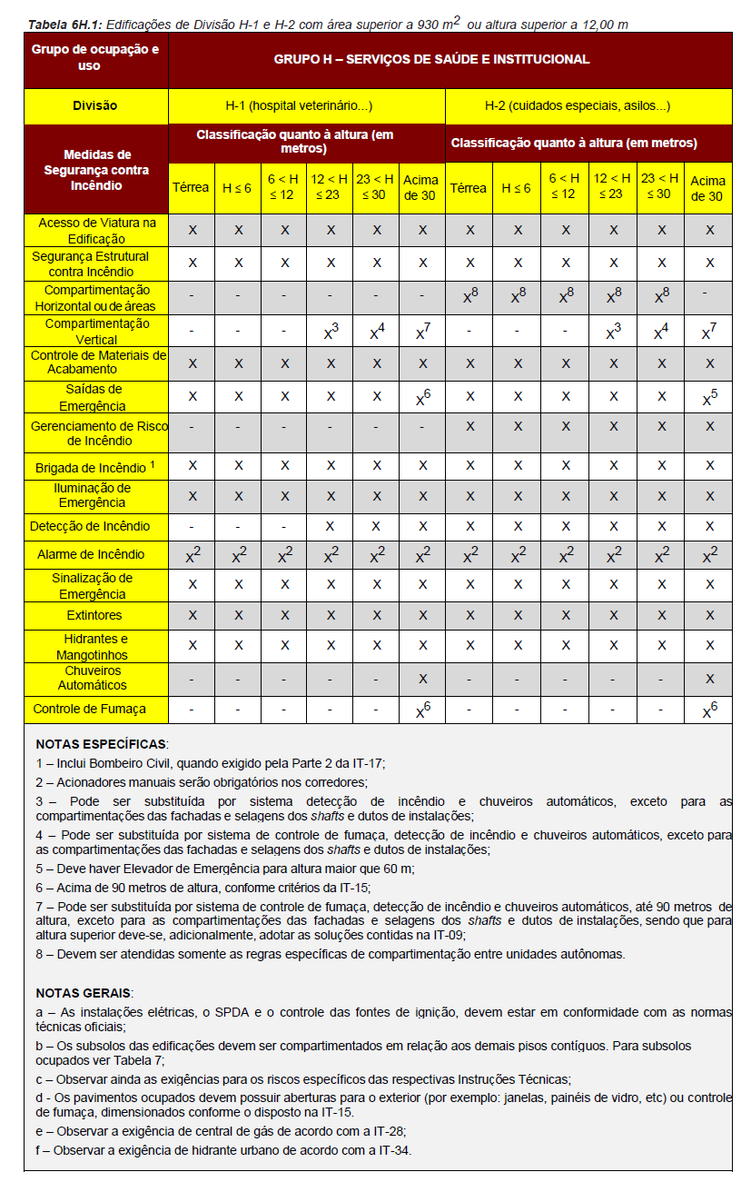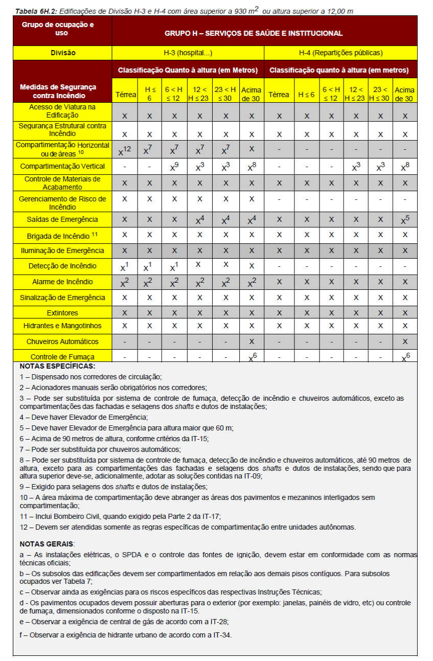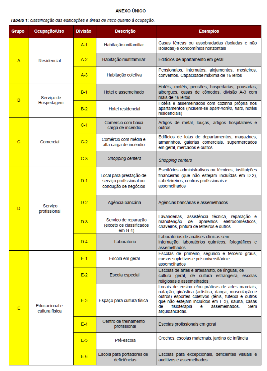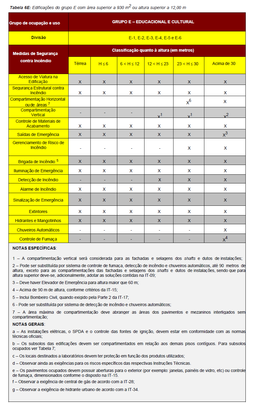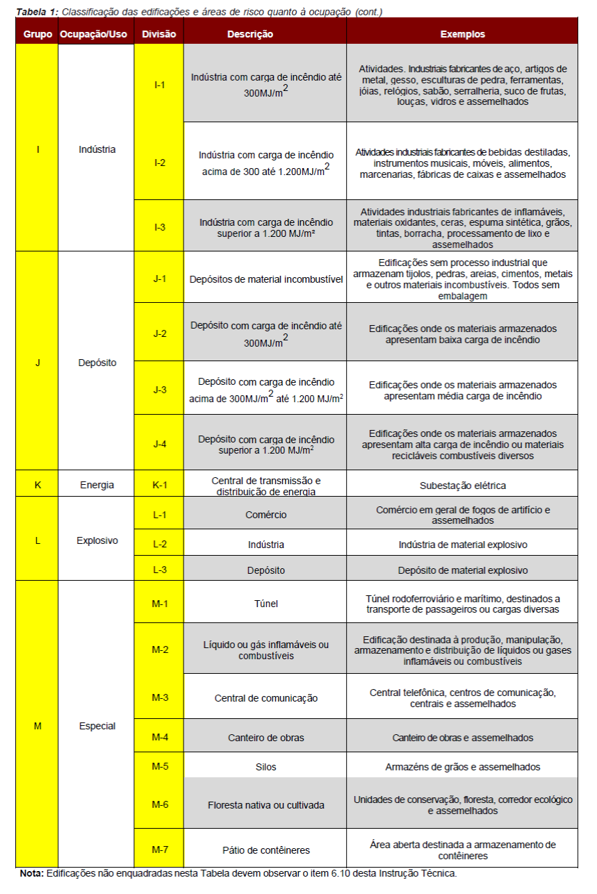 Para fins de aplicação das medidas de segurança contra incêndio serão