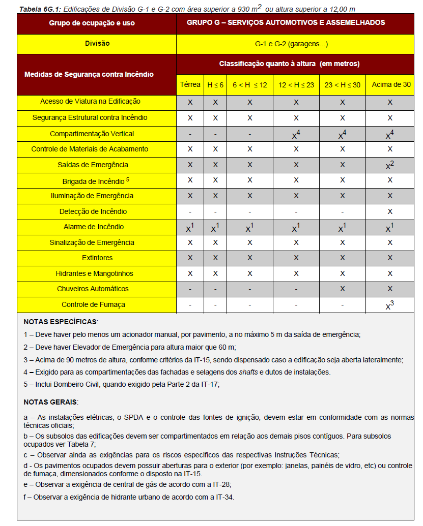 tabelas de exigências, de acordo com a classificação das edificações e das
