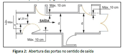 saídas horizontais, quando houver, e respectivas portas ou espaço livre