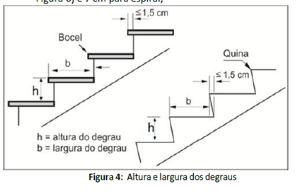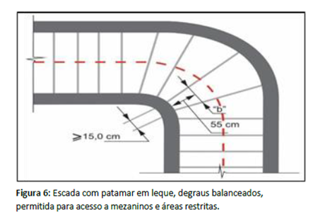 escadas, rampas e assemelhados, no caso de edificações dos Grupos F-3, F-6, F-7