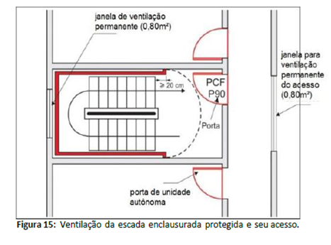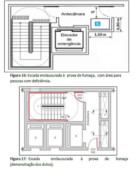 escada protegida, devem ser projetados sistemas de pressurização para as