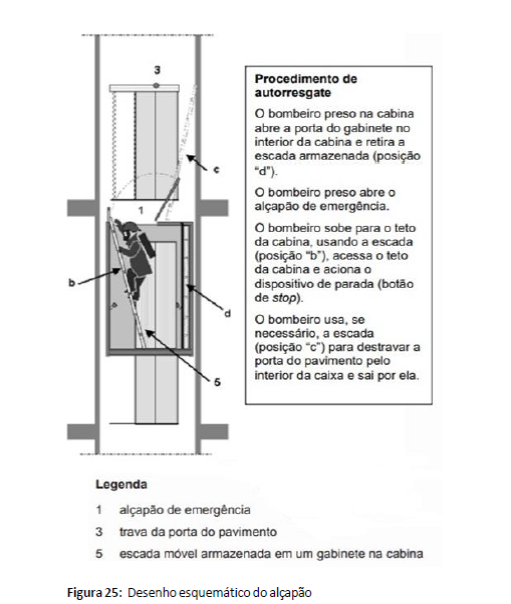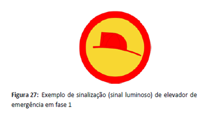 Anexo B para: acessar elevadores de emergência; percurso dentro de escadas de