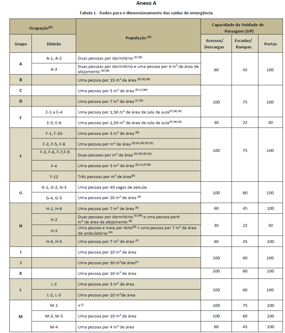 escadas depende do dimensionamento das saídas pelo cálculo da população (Tabela