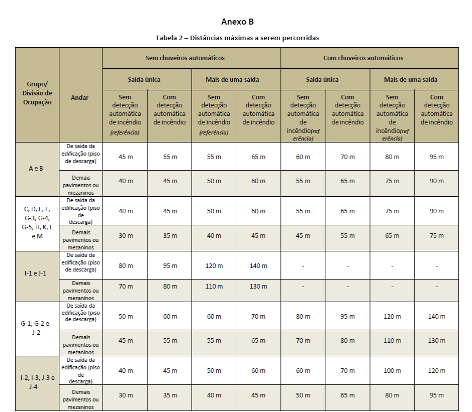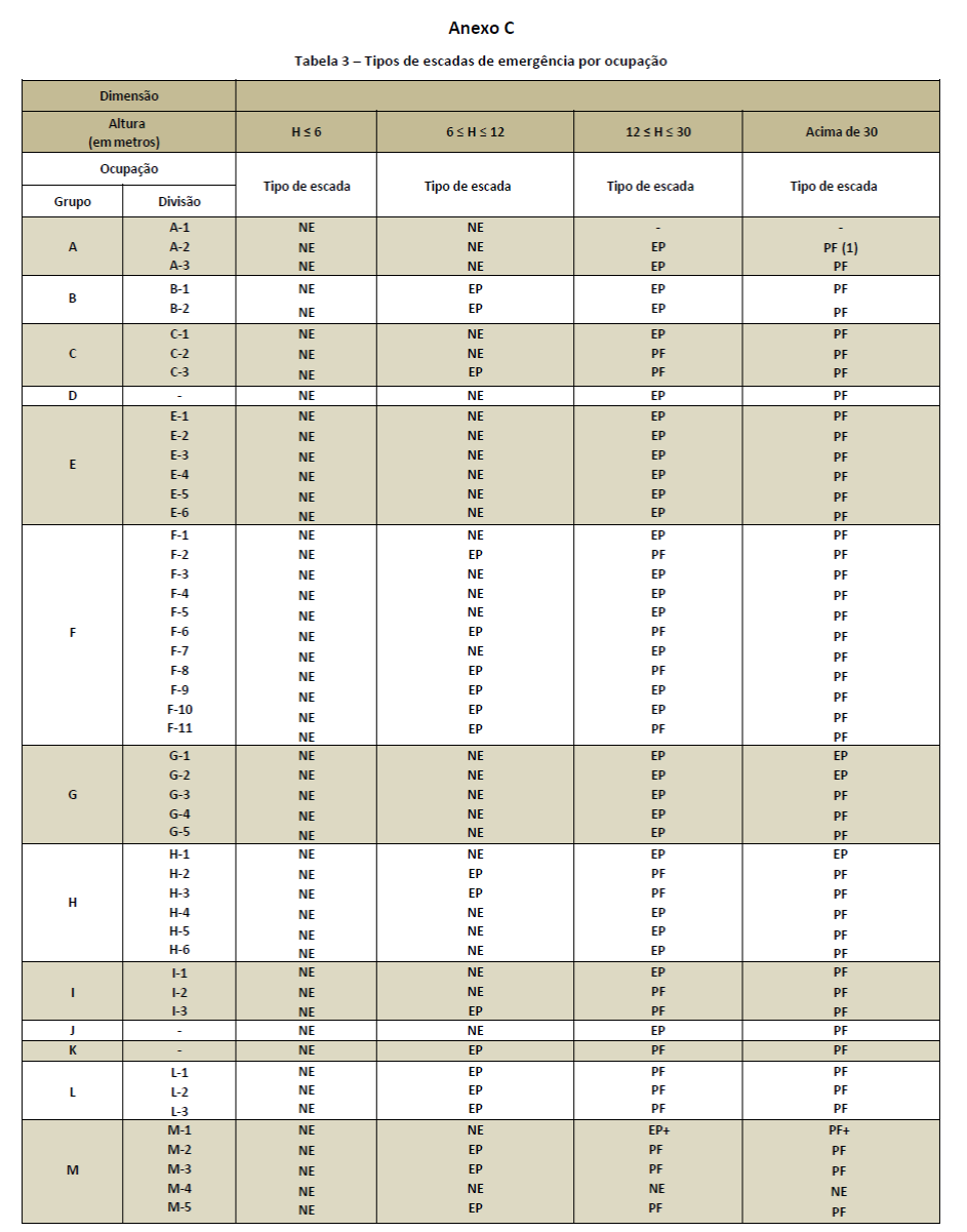 do grupo de ocupação - conforme Tabela 1 do Regulamento de Segurança contra Incêndio.