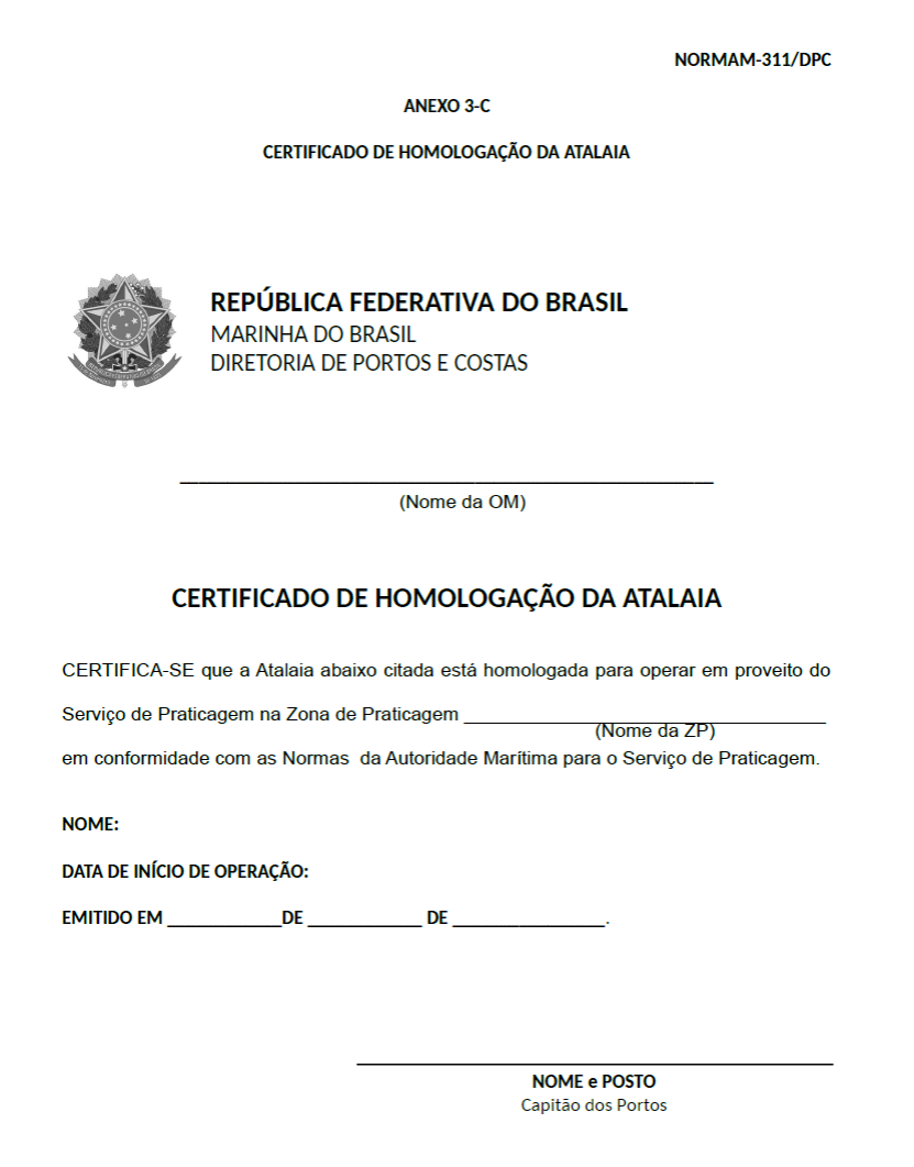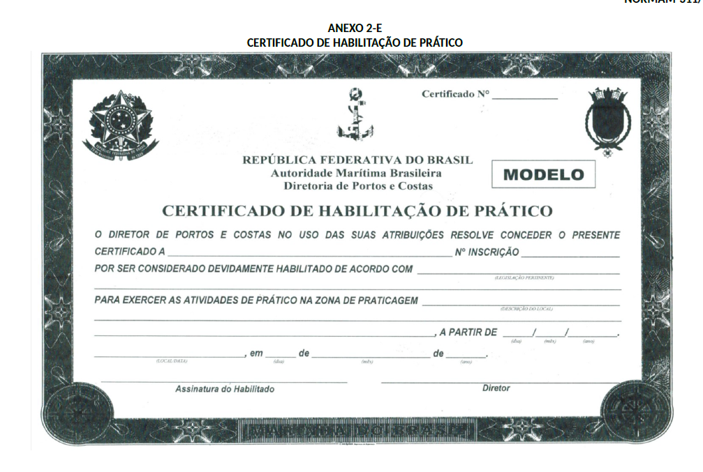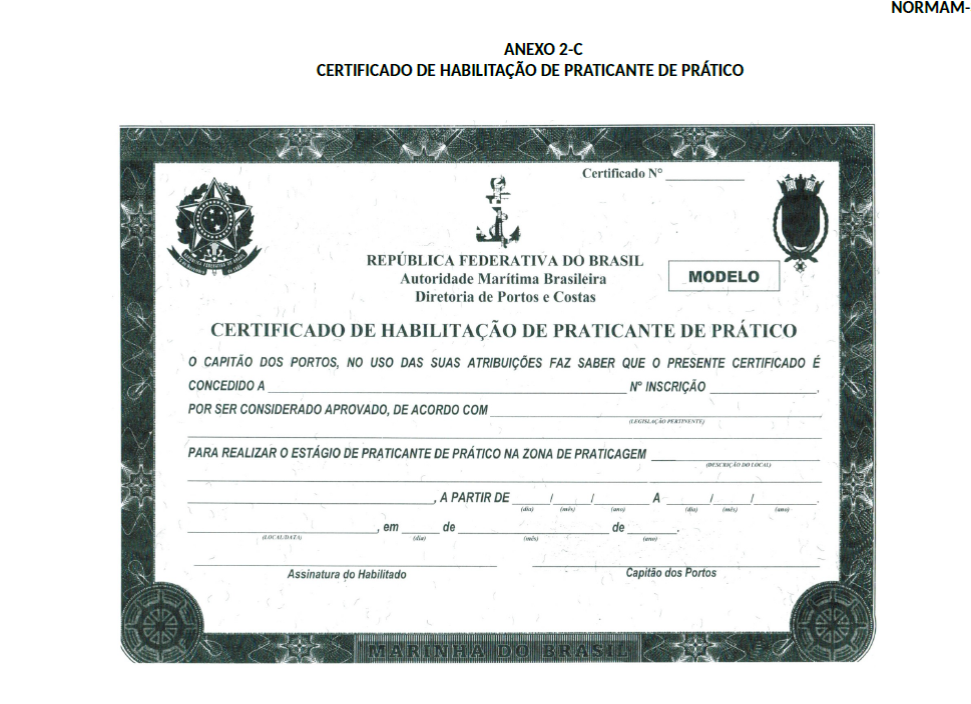 CERTIFICADO DE HABILITAÇÃO DE PRATICANTE DE PRÁTICO