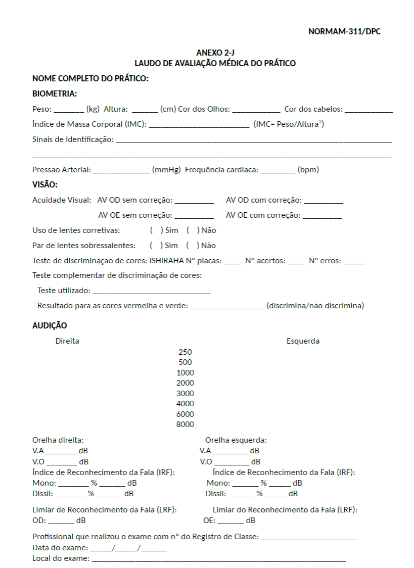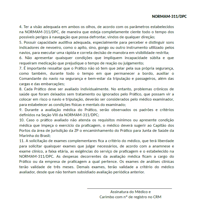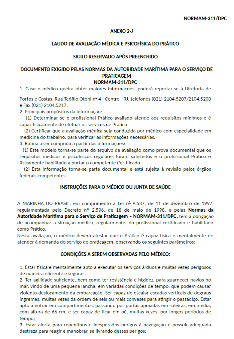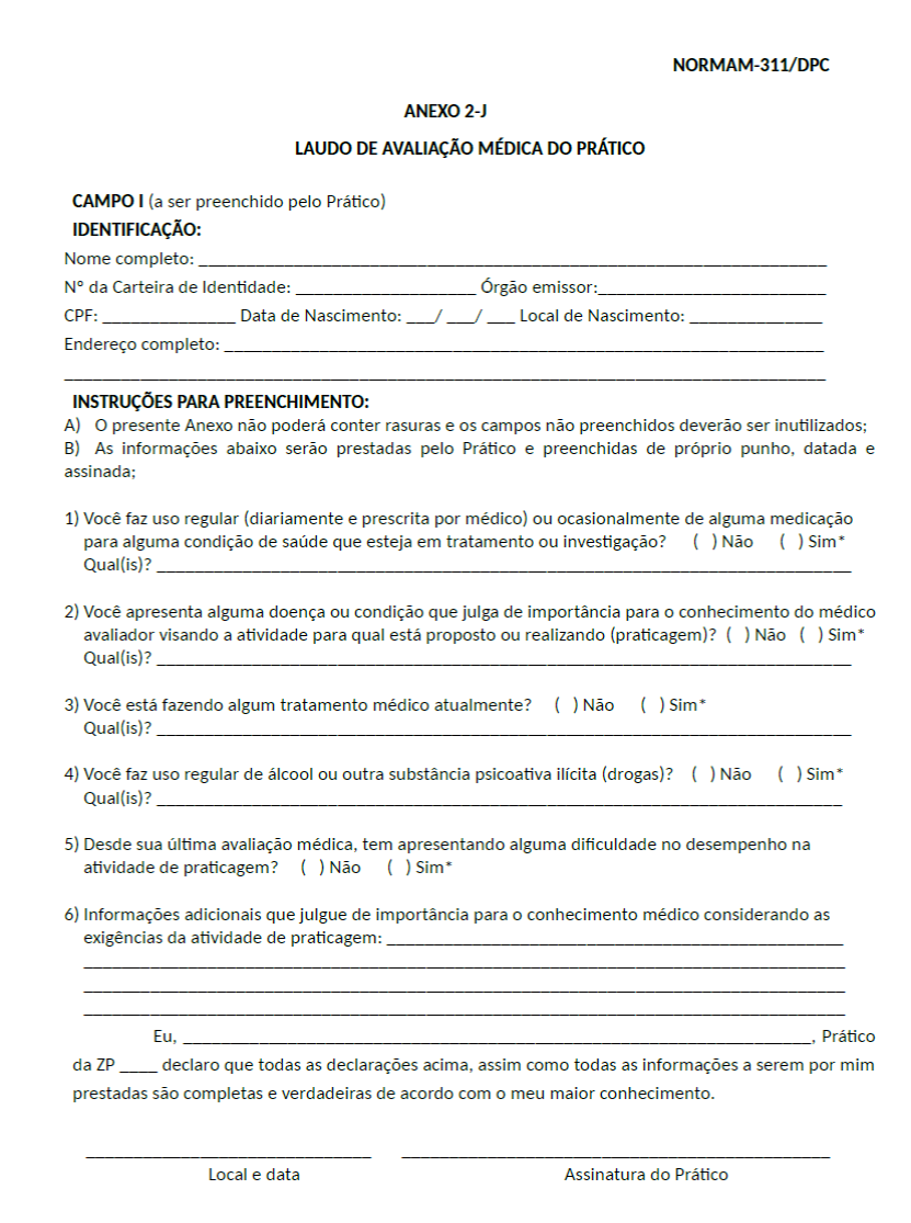 PRÁTICO - Documento que atesta que o Prático está com as suas condições físicas