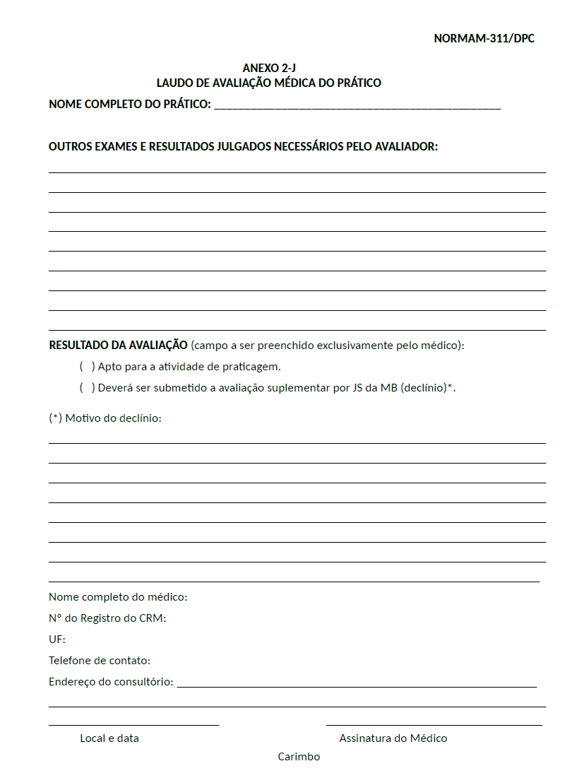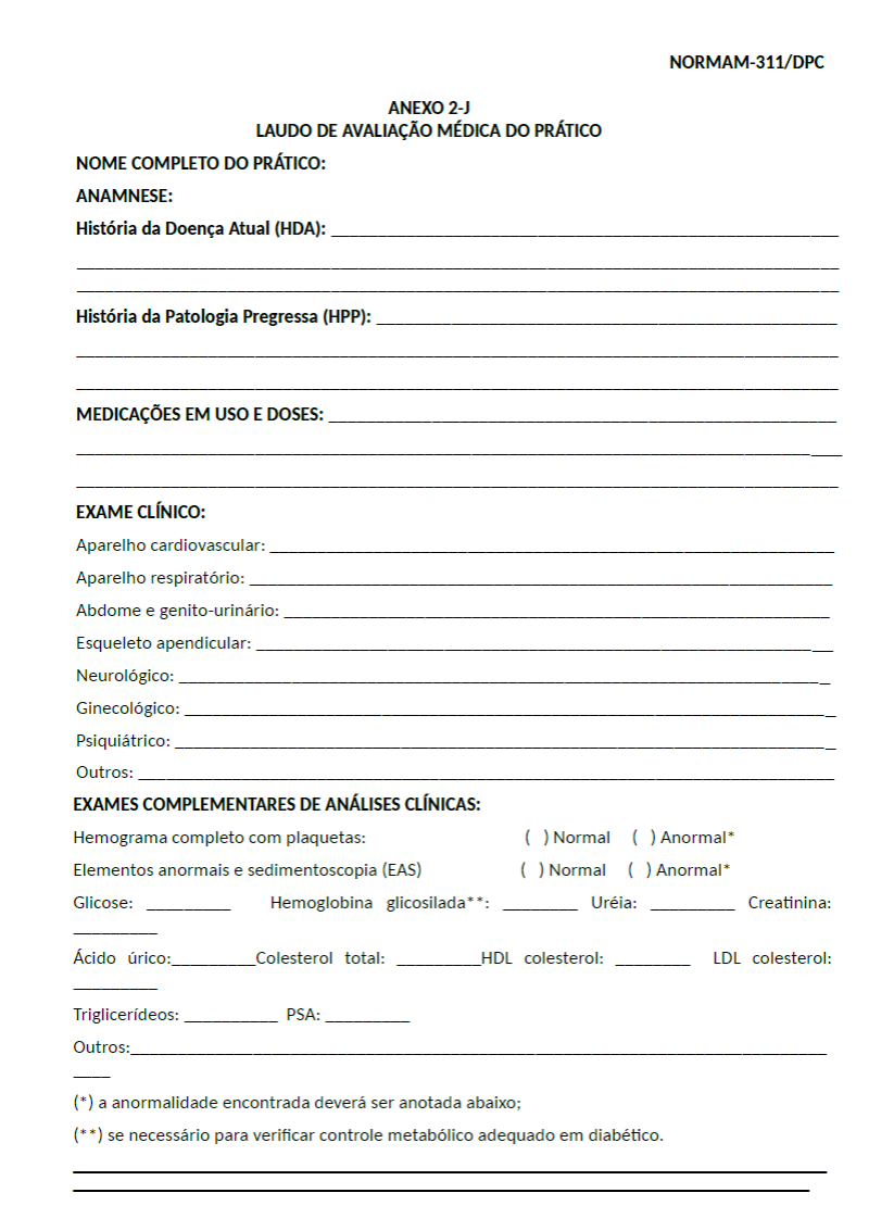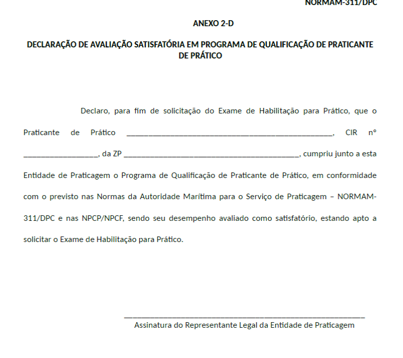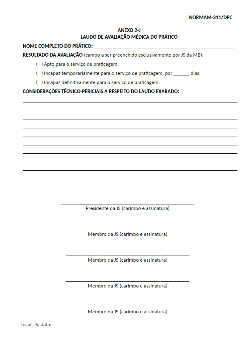 PRÁTICO - Documento que atesta que o Prático está com as suas condições físicas