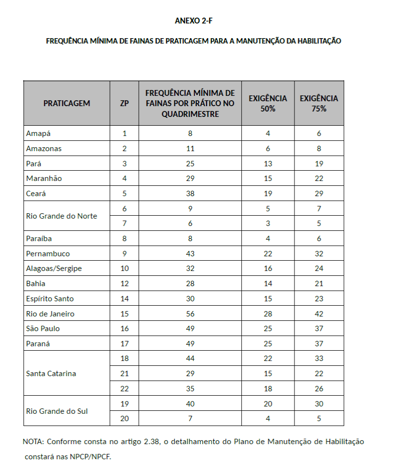 e mentais dentro de um padrão mínimo para a prestação do serviço de praticagem.