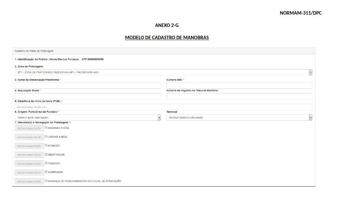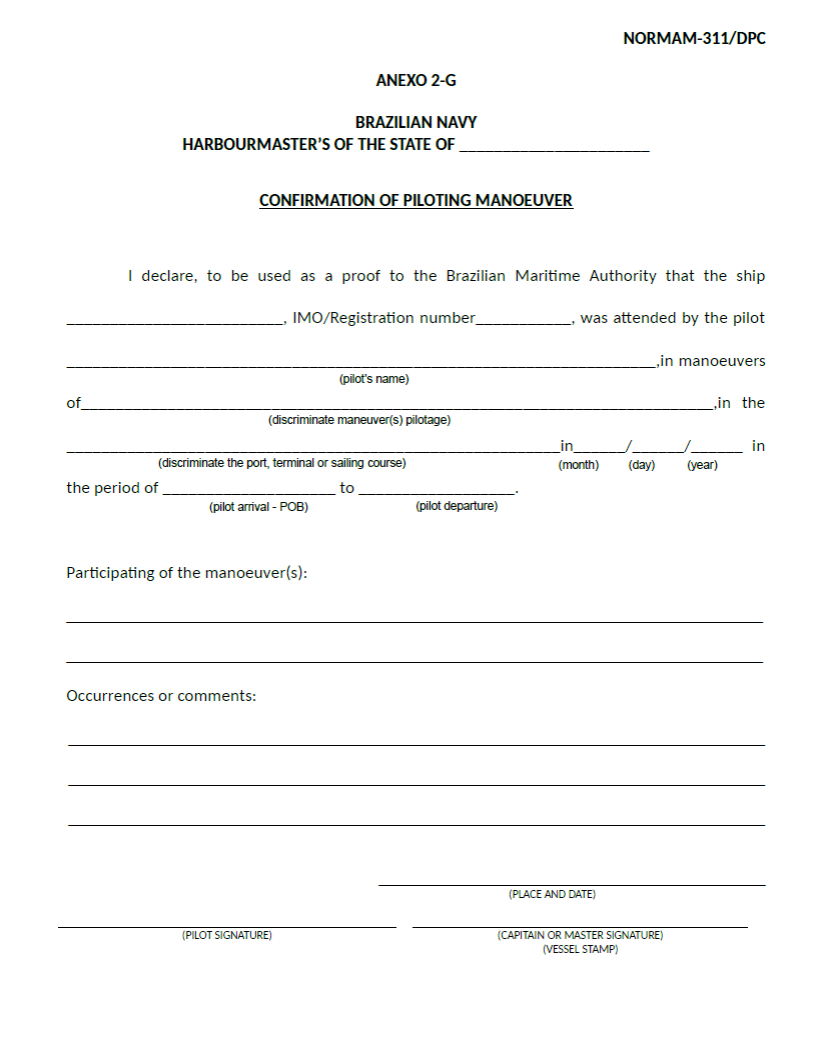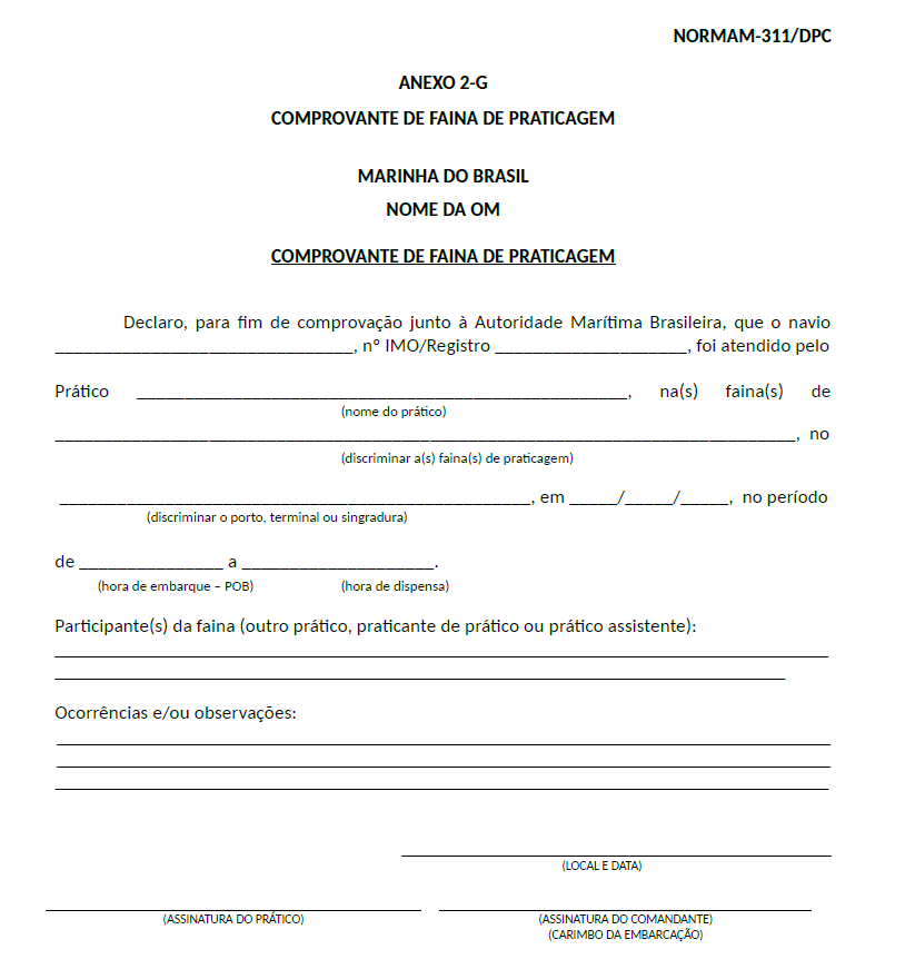 ou eletrônico que atesta que o prático executou a faina de praticagem.