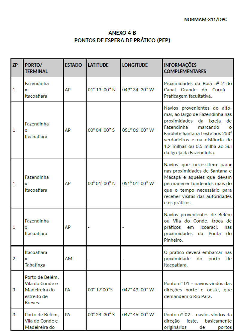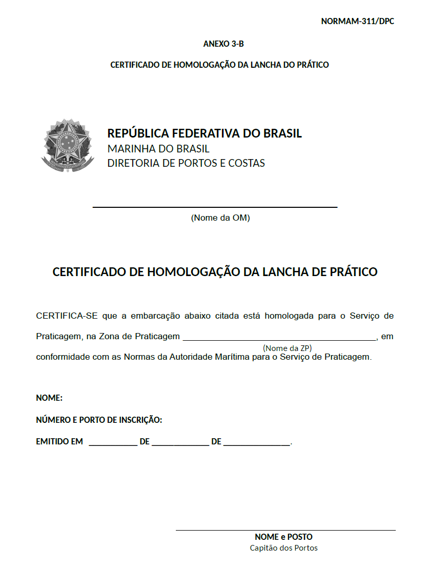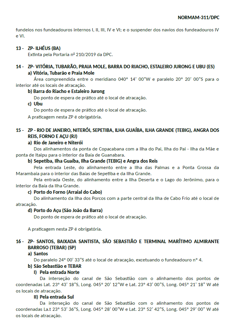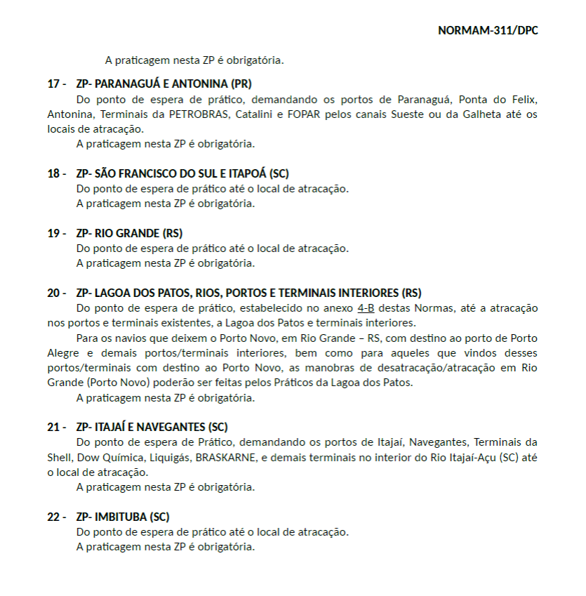Aprovar as Normas da Autoridade Marítima para o Serviço de Praticagem NORMAM-311/DPC, que encontra-se disponível no site abaixo: